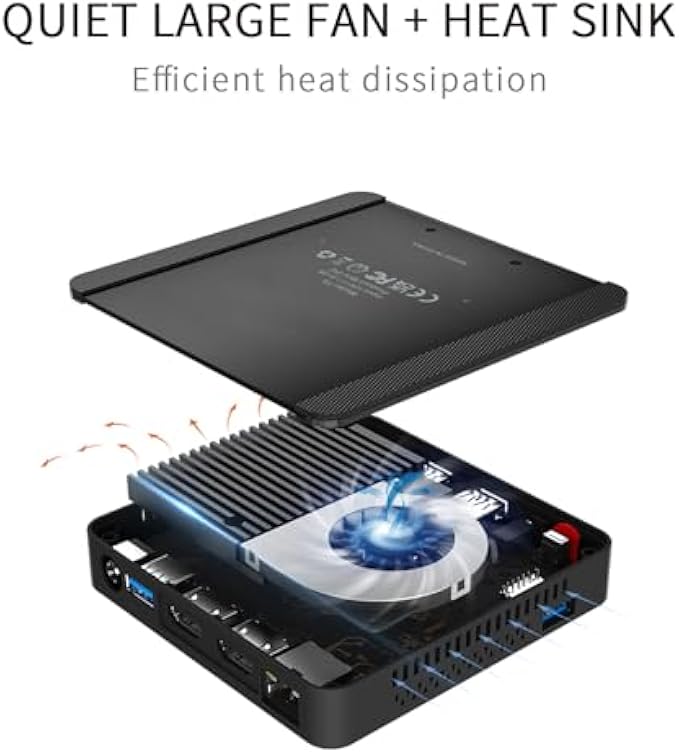 • MINI PC T5 : Equipped with Intel Gemini Lake Refresh processor N4020 (up to 2.8GHz), 4M cache, 6W TDP and large fan and heatsink for more heat dissipation and energy saving