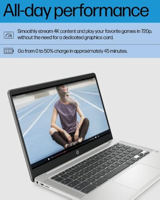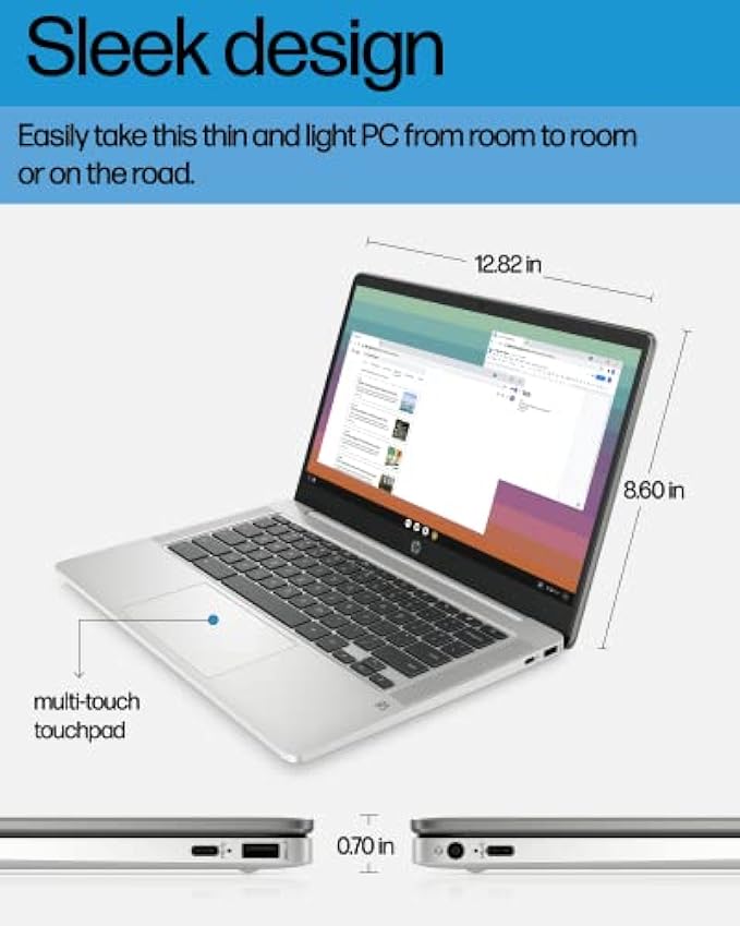 HP Chromebook 14 Laptop, Intel Celeron N4120, 4 GB RAM, 64 GB eMMC, 14" HD Display, Chrome OS, Thin Design, 4K Graphics, Long Battery Life, Ash Gray Keyboard (14a-na0226nr, 2022, Mineral Silver)