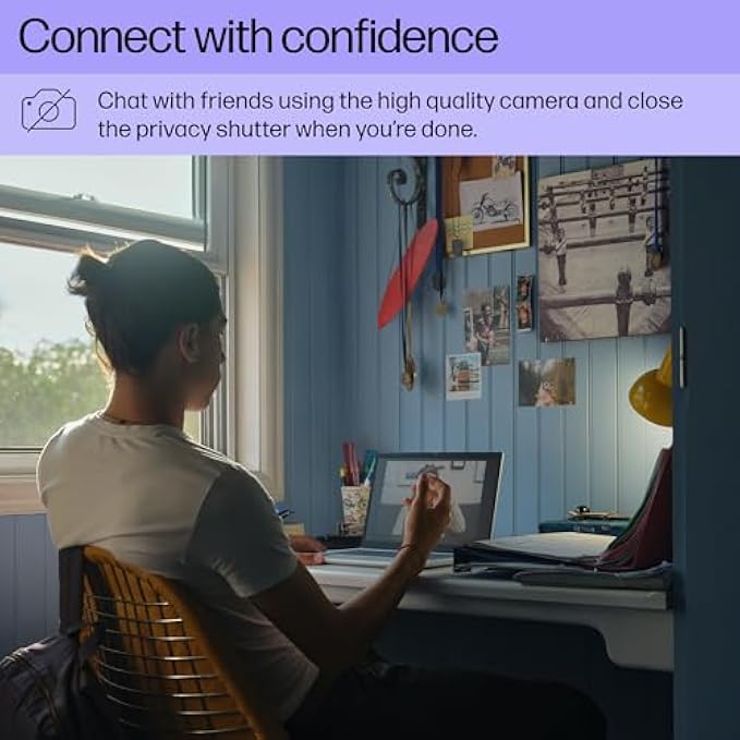 • CONNECT WITH CONFIDENCE - Chat or collaborate with friends using the high-quality HP True Vision HD camera and keep your private moments private with the easy-to-access camera privacy shutter when not in use