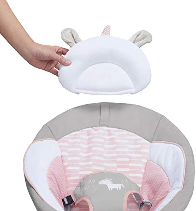 Ingenuity Soothing Baby Bouncer Infant Seat with Vibrations, -Toy Bar & Sounds, 0-6 Months Up to 20 lbs (Pink Flora the Unicorn)