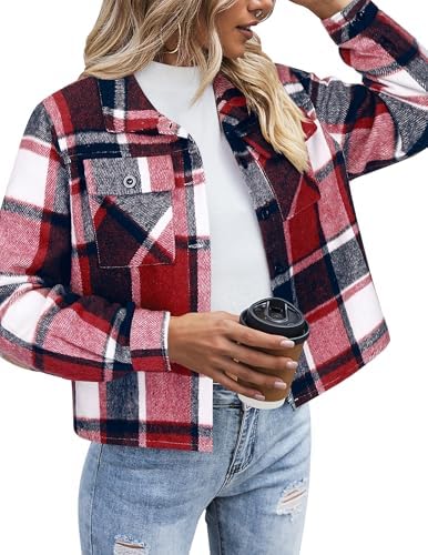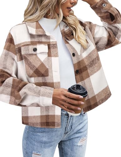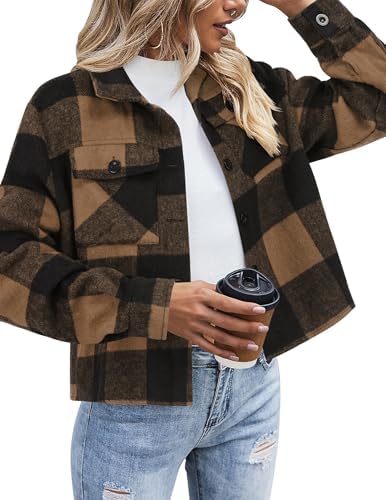 Zeagoo Flannels for Women Cropped Shacket Jacket Fashion Plaid Button Down Shirt 2024 Fall Coat Tops