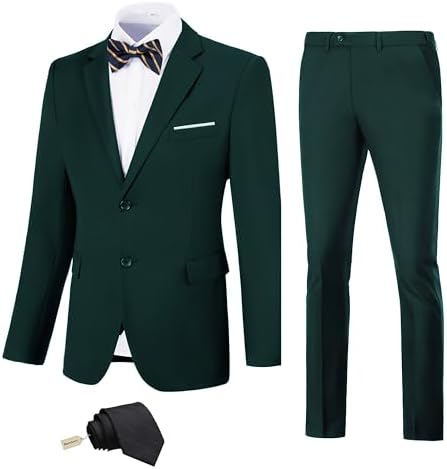 JPF Men's 2 Piece Slim Fit Suit Set, Two Button Solid Jacket Pants with Tie Suits for Men