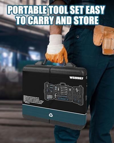 Multi-functional Hand Tool Set: Versatile and easy to handle, this basic home tool kit is a practical and professional helper, whether it's for repair or maintenance, drilling, furniture and toy assembly and design, this portable hand tool set will meet all your needs Durable & Reliable: All tools are made of high quality jet and the surface is treated with anti-corrosion.The portable, blow moulded case keeps all tools neat, stable and safe, so you can easily find the tools you need and do DIY homework faster.Compact & Portable: This household tool kit has a portable, blow moulded case keeps all tools neat, stable and safe, so you can easily find the tools you need and do DIY homework faster Please Note:Due to long distance transportation, some parts may be scattered, please organize and arrange them according to the specific product location shown in the product details. Please apply for an exchange if there are any missing parts. If you have any issues, please contact customer service 100 Pieces Hardware Kit Box: Included is a 100pieces accessories kit box: 10 x Grey plastic anchors, 10 x Self drilling screws, 5 x Colorful push pin, 5 x Brass cup hooks, 64 x Galvanized flat-head nails,6 x Brass flat-head nails You Will Get: 100 Pieces Hardware Kit Box, 20 Pieces Screwdriver Bit Set, 8 Pieces Hex Key Set, 5 Pieces Combination Wrench Set, 1 x Adjustable Wrench, 1 x Long Nose Pliers 6", 1 x Diagonal Pliers 6", 1 x Claw Hammer of 8oz, 1 x Spirit Level of 90° and 45°,1 x Flat Pry Bar, 1 x Voltage Tester, 1 x Measure Tape of 3M/10ft, 1 x Ratchet Screwdriver, 1 x Slotted Screwdriver, 1 x Philips Screwdriver