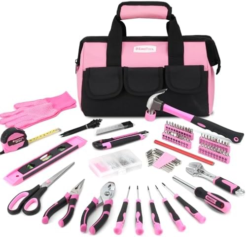 275PCS Home Reapir kit: This comprehensive 275-piece pink tool set is designed for daily DIY activities at home, containing all the practical tools you might need. Making it easy to handle both simple home repairs and complex renovation projects. Durability: The pink hand tools are made of high-strength and wear-resistant premium carbon steel. Their surface is chrome-plated to enhance corrosion resistance and hardness, ensuring durability to meet various work demands. Multi-functional portable tool bag: 12-inch tool bag is made from durable and sturdy 600D Oxford cloth material, ensuring excellent durability and long-lasting lifespan. It features a spacious wide-mouth opening for convenient access to tools. The interior and exterior of the tool bag are equipped with multiple pockets arranged in a reasonable manner, allowing effective classification and storage of various tools. All-In One Kit Includes: 275-piece pink tool kit includes basic tools such as wrench, Allen key, claw hammer, level, screwdriver, screwdriver bit, tape measure, utility knife, pliers, scissors. It is an ideal choice womens tool kit for house. Ideal Gift Choice -This tool set for women is easy to carry , to stock and is an excellent pink tool kit for home. Pink drill set for women is a ideal gifts. Also, this womens tool kit is perfect for Mother's Day, and is a great option as gift for Mom, girlfriend & sisters at birthday or Christmas.